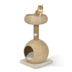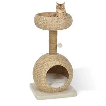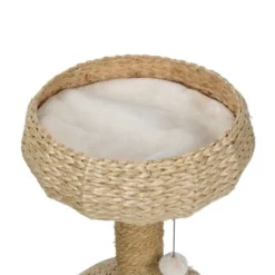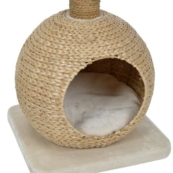 Der AniOne Kratzbaum Anzo ist aus natürlicher Wasserhyazinthe gefertigt, die dem Kratzbaum nicht nur seine hochwertige und moderne Optik verleiht sondern zudem noch für eine hohe Luftdurchlässigkeit der Körbe sorgt. Ein großzügiger Aussichtskorb bietet Platz zum Ausruhen und Beobachten während die Kuschelhöhe die ideale Rückzugsmöglichkeit darstellt. Diese ist zudem mit einem weichen und bequemen Liegekissen ausgestattet, das bei Bedarf auch ganz leicht entnommen und bei 30° gewaschen werden kann. Der Kratzbaum eignet sich ideal für kleine bis mittelgroße Katzen und findet aufgrund seiner Größe selbst in kleinsten Haushalten Platz. So schenkt der AniOne Kratzbaum Anzo nicht nur dank seines wunderschönen Aussehens und seiner natürlichen Materialien lange optische Freude sondern durch seine moderne Form und die zwei Etagen vielfältige Möglichkeiten zum Beobachten, Spielen und Kratzen.