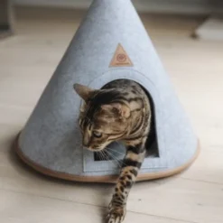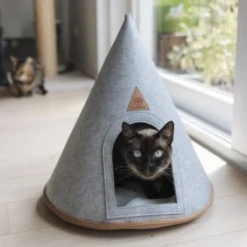 Das Katzenzelt besteht aus hochwertigem Filz und ist für einen praktischen und schnellen Aufbau mit Reißverschlüssen versehen. Der gepolsterte Boden bietet einen idealen Schlafkomfort und wird ergänzt durch das beigefügte weiße Kuschelkissen, welches auch separat genutzt werden kann.