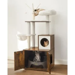 FEANDREA Kratzbaum Mit Katzentoilette Braun Braun