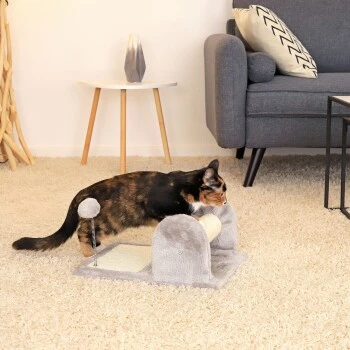 Dieser hochwertige Kratzteppich mit viel Sisal und weichem Plüsch ist dank seiner Größe auch für Jungkatzen optimal geeignet. Eine großartige Beschäftigung bietet der bewegliche Spielball. Durch Berühren wird durch die schnellen Bewegungen der Spiel- und Jagdtrieb Ihrer Katze geweckt. Für die ideale Krallenpflege steht Ihrem Liebling eine Sisalkratzfläche und eine robuste Sisalkratzstange zur Verfügung. Die Maße dieses kompakten Kletterbaums in der Farbe Hellgrau betragen 40×30 cm. Eine Aufbauanleitung und das Montagewerkzeug werden natürlich mitgeliefert.