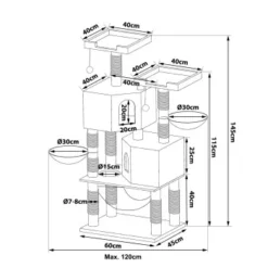 - Maße UND FARBEN. Dieses hochwertige Katzenzubehör verfügt über die Maße 60 x 45 x 145 cm, die Höhlen über 38 x 38 x 25 cm und das Plateau 35 x 35 cm. Das langlebige Spielzeug ist in der Farbe hellgrau und dunkelgrau erhältlich.
