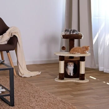 - SPIEL- UND RUHEPARADIES. Dieser Katzenbaum mit einem Plüschspielball befriedigt den Spiel- und Jagdtrieb Ihrer Katze. Eine Höhle, ein Plateau und eine weiche Liegefläche laden zu Ruhephasen ein und auch das beliebte Beobachten kommt nicht zu kurz