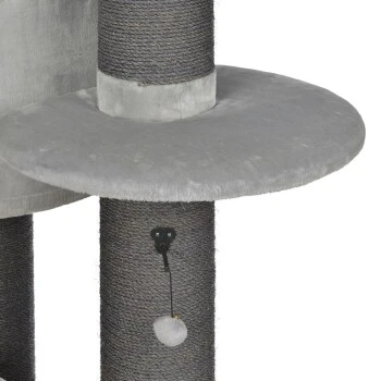 Der robuste Kratzbaum Henry hat eine besonders stabile Bodenplatte, die für einen sicheren Stand sorgt. Drei verschieden große Liegeflächen und eine kuschelige Höhle laden zum verweilen auf unterschiedlichen Ebenen ein. Vier hohe Sisalsäulen für den Kratztrieb und zwei kleine Spielbälle runden den Bedarf deiner Katze ab.
