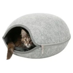 2 in 1: Kuschelhöhle Luna. Der isolierende, schmutzabweisende und formstabile Liegeplatz aus Filz bietet Katzen Höhle und Bett in einem. Durch den umlaufenden Reißverschluss ist die Kuschelhöhle komplett zu öffnen und platzsparend zu verstauen. Mit gestepptem Kissen (Handwäsche).